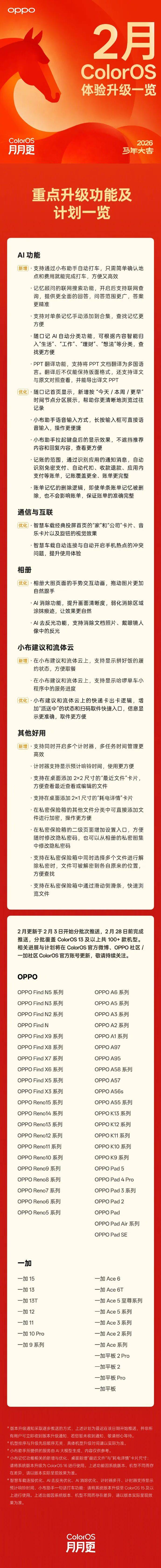 此次ColorOS二月体验升级,第三批2月中下旬推送,